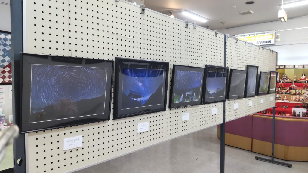 浪合カメラクラブ主催「星景写真コンテスト」の第1回から今年度のコンテストまでの優秀作品、約40点を展示しています。