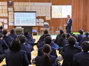 熊谷元一保存活用委員会のメンバー数人が授業にお邪魔して、熊谷元一の人物像を紹介、写真の解説・質問に答えるなど、生徒さんの学習の手伝いに入っています。
