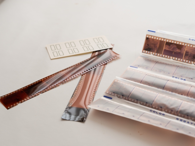 スマホもデジカメもない頃、写真はカメラで撮影したものを写真館等で現像してもらうのが普通でした。ネガは、撮影後の現像処理(化学薬品による処理)によって作られ、焼き増しや、サイズ変更のための元データとして、写真と一緒に納品されました。