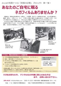 皆さんが撮影した写真で、地域や暮らしの様子がわかる写真を集めた「阿智の記憶写真リスト」を作成します。そこで皆さんがお持ちのネガをデジタル化する体験会を行います。お持ちのネガをスタッフがデジタル化します。また、ネガがない方もデジタル化作業を体験いただけます。